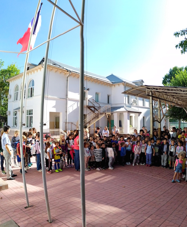 Lundi 30 septembre, tous les élèves et les personnels de l’école française de Tachkent ont observé une minute de silence devant le drapeau français en berne. Cette manifestation était un hommage à Jacques Chirac, ancien Président de la République française (1995/2007). Jacques Chirac est mort jeudi 26 septembre 2019 à l’âge de 86 ans.