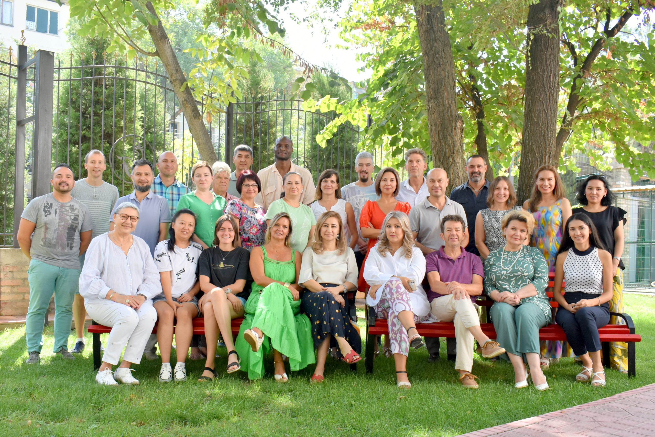 les enseignants de l'école française de Tachkent avec leurs élèves